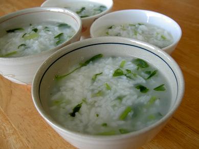 um mingau de arroz saudável chamado nanakusa gayu (七草粥).
